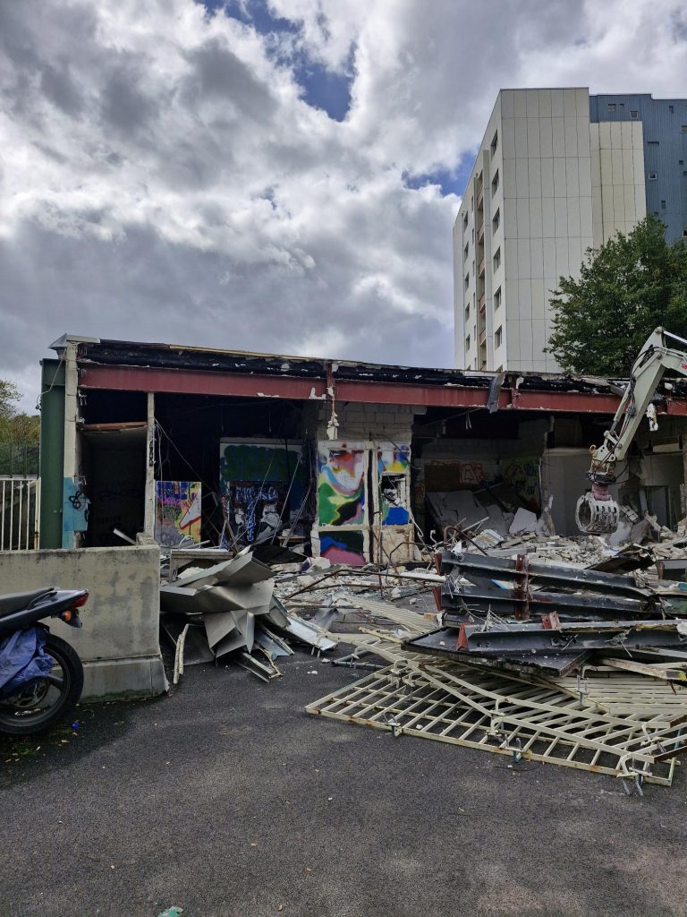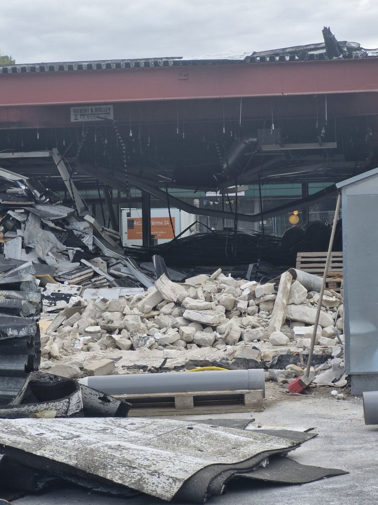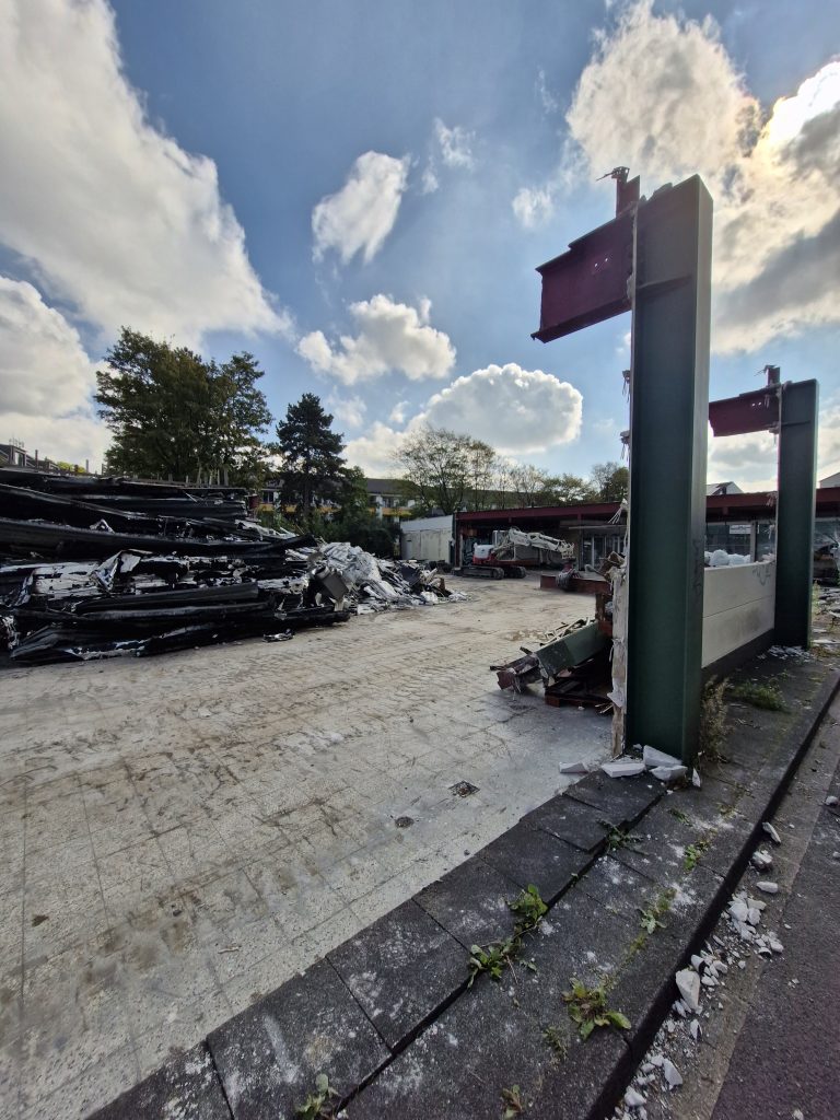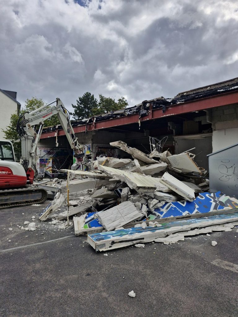15.09.2025 – Es geht los! Die Außenwand der ehemaligen Skaterhalle (Kaisers) ist schon weg
